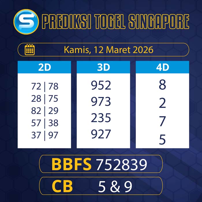 PREDIKSI TOGEL SINGAPORE TERBARU KAMIS 12 MARET 2026 – Selamat bergabung untuk semua sobat tercinta di halaman yang akan membantu sobat dalam menjalankan pasaran singapura hari ini.
