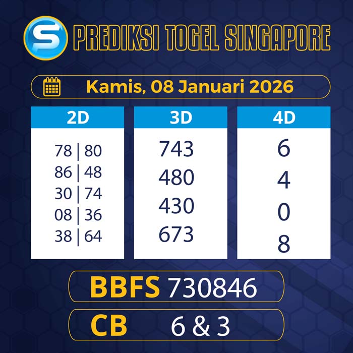 PREDIKSI TOGEL SINGAPORE TERBARU KAMIS 8 JANUARI 2026 – Selamat bergabung untuk semua sobat tercinta di halaman yang akan membantu sobat dalam menjalankan pasaran singapura hari ini.