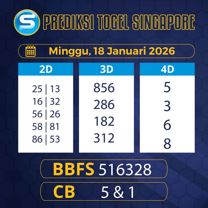 PREDIKSI TOGEL SINGAPORE TERBARU MINGGU 18 JANUARI 2026 – Selamat bergabung untuk semua sobat tercinta di halaman yang akan membantu sobat dalam menjalankan pasaran singapura hari ini.