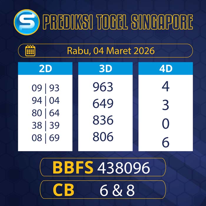PREDIKSI TOGEL SINGAPORE TERBARU RABU 4 MARET 2025 – Selamat bergabung untuk semua sobat tercinta di halaman yang akan membantu sobat dalam menjalankan pasaran singapura hari ini.